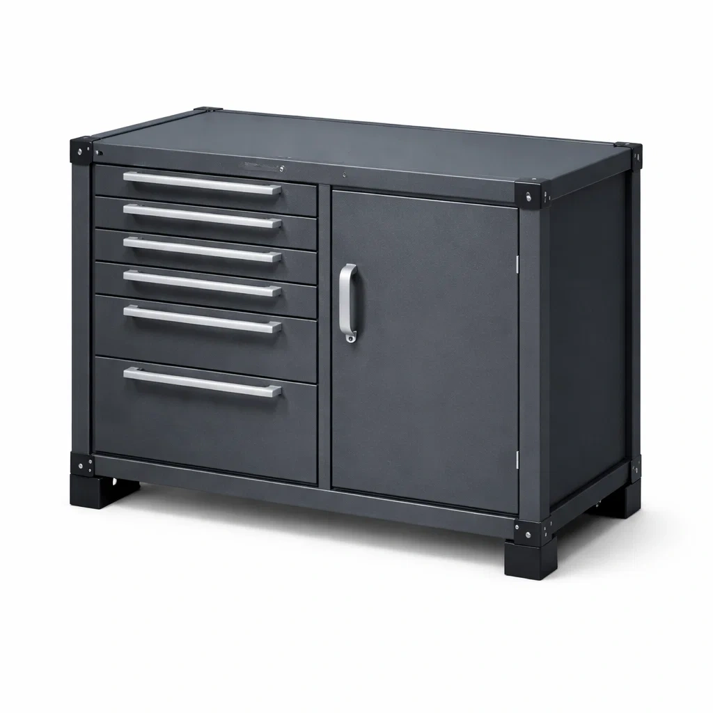 Armoire à outils en métal avec tiroirs et porte en acier gris