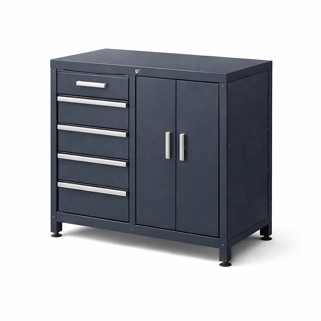 Armoire à outils en acier bleu avec tiroirs et portes
