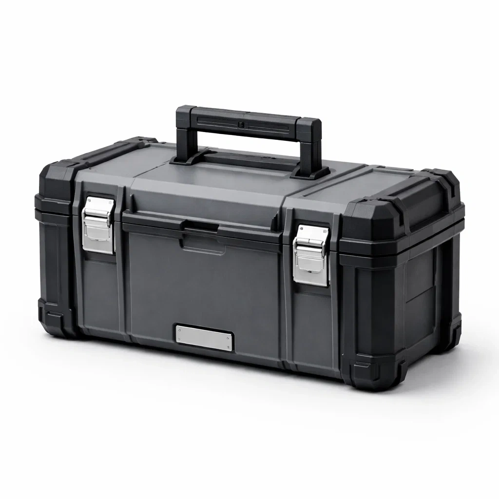 Boîte à outils en plastique avec fermetures métalliques
