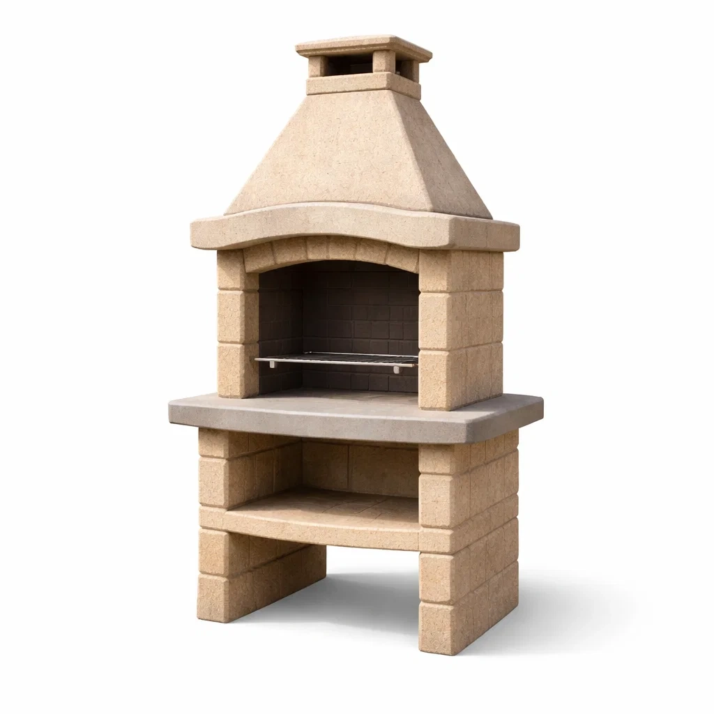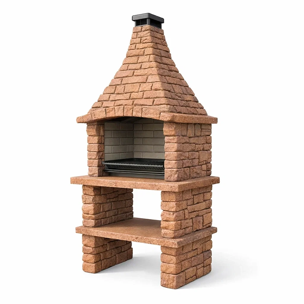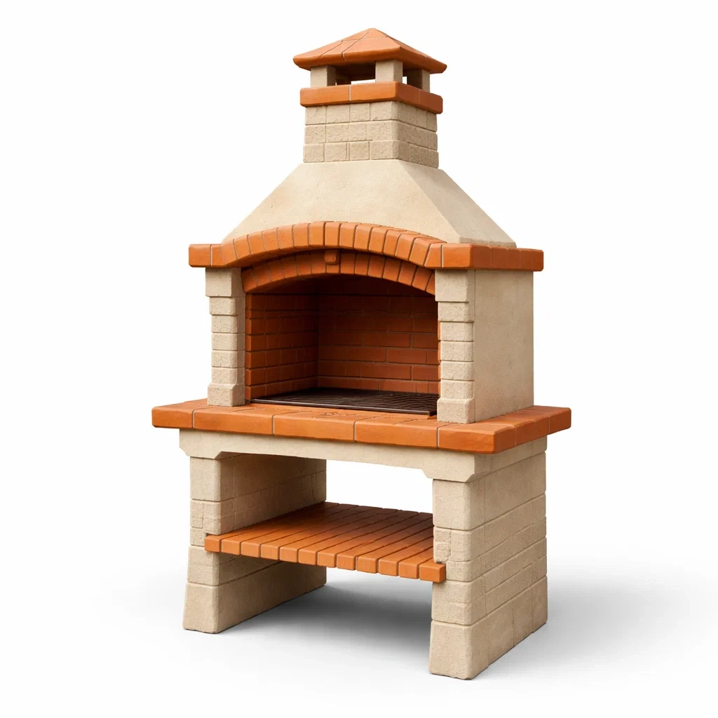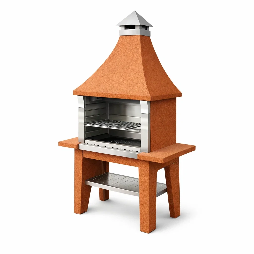Barbecue en pierre réfractaire et acier galvanisé avec cheminée