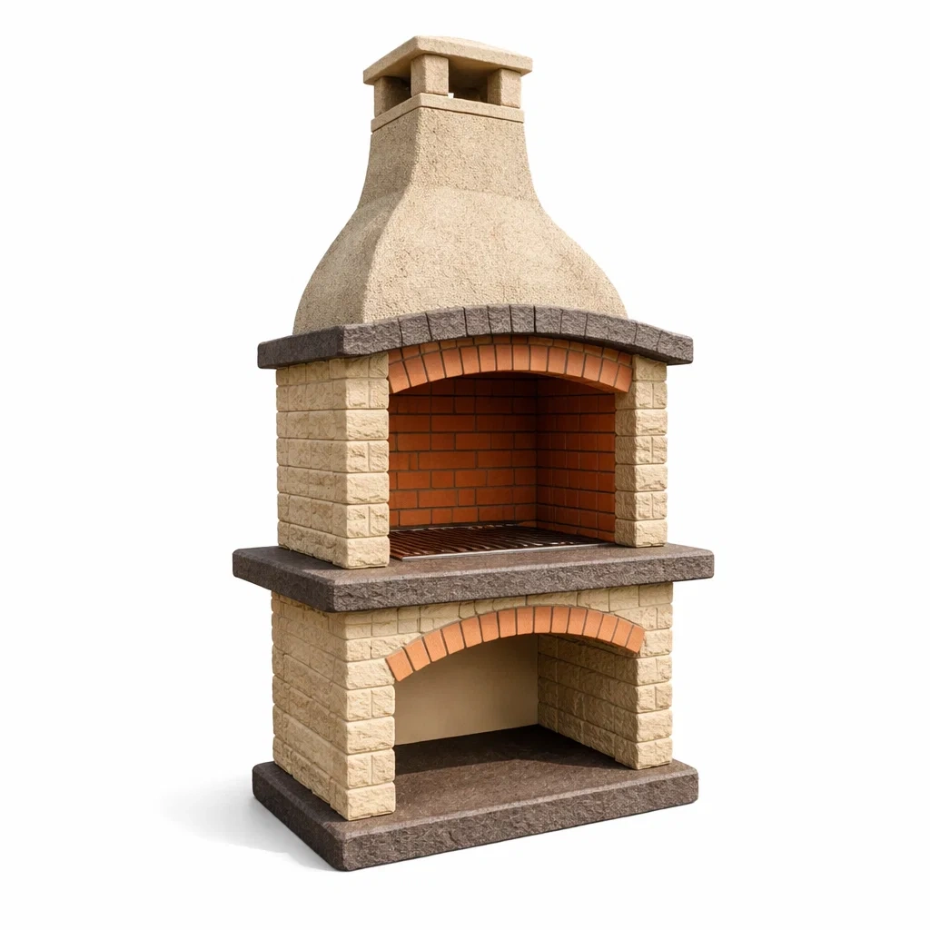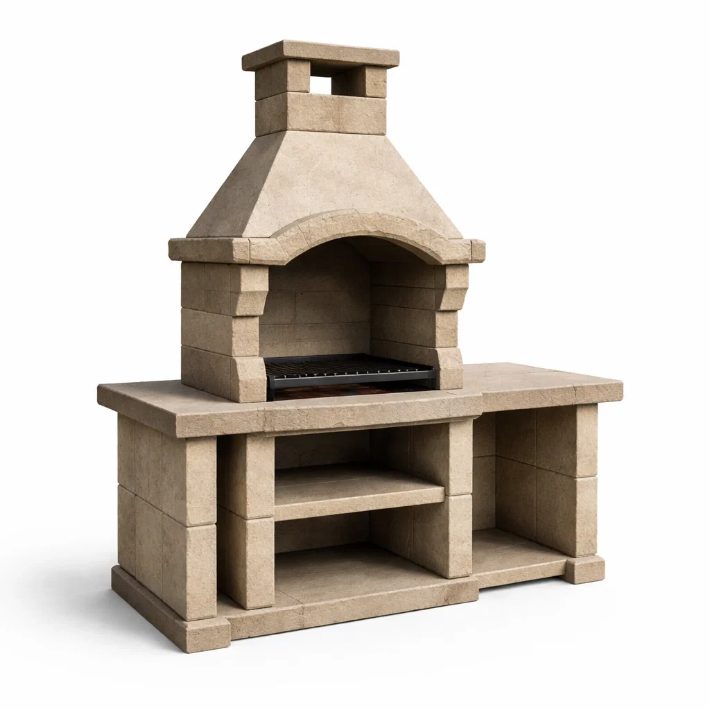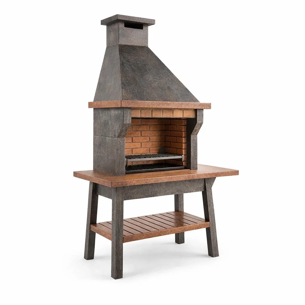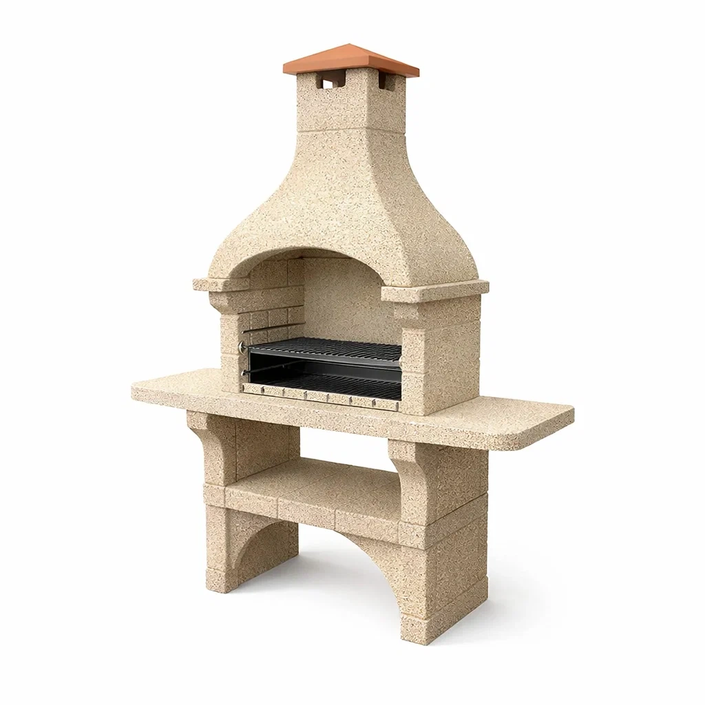 Barbecue en pierre réfractaire et acier galvanisé avec cheminée