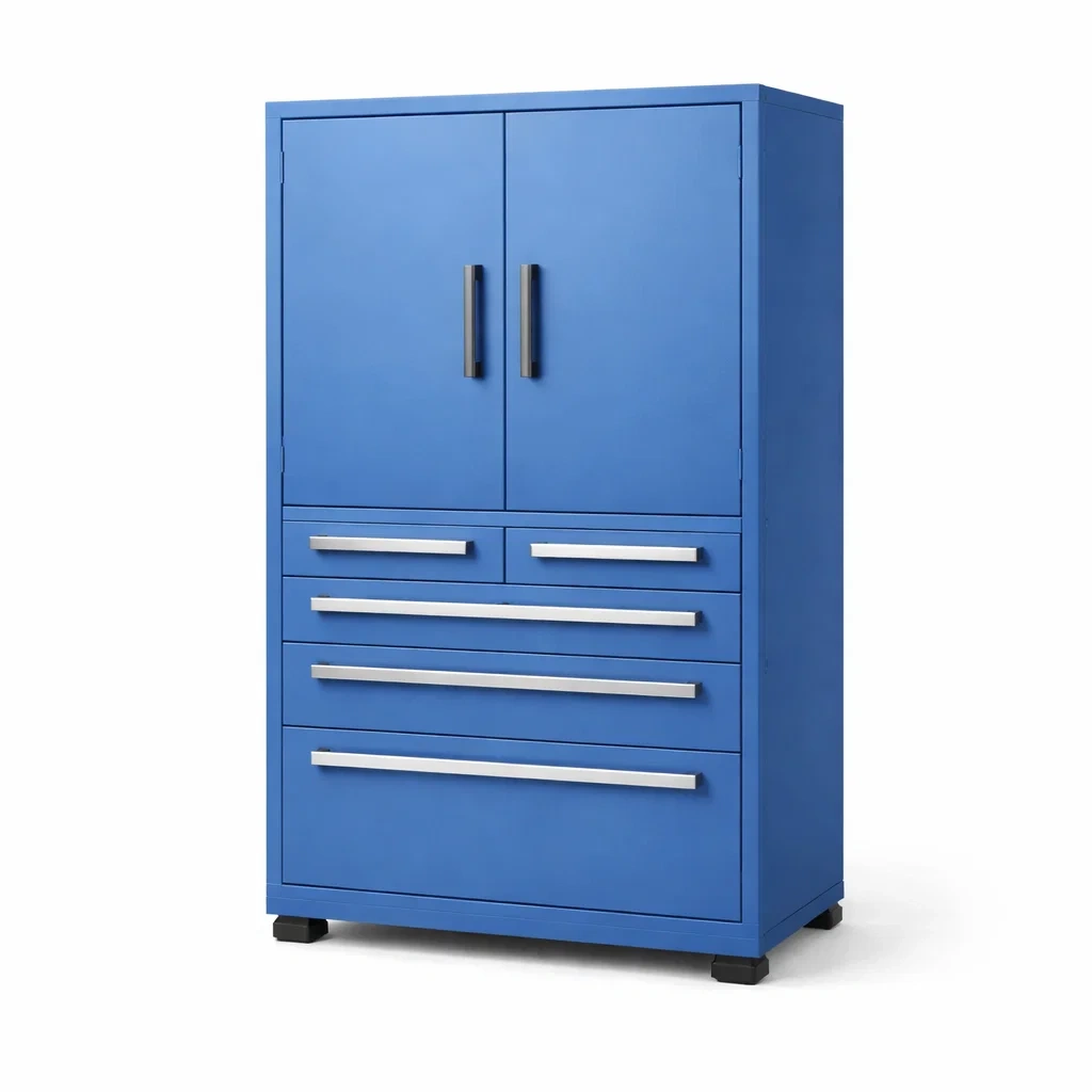 Caractéristiques: Armoire de rangement avec 5 tiroirs et deux portes