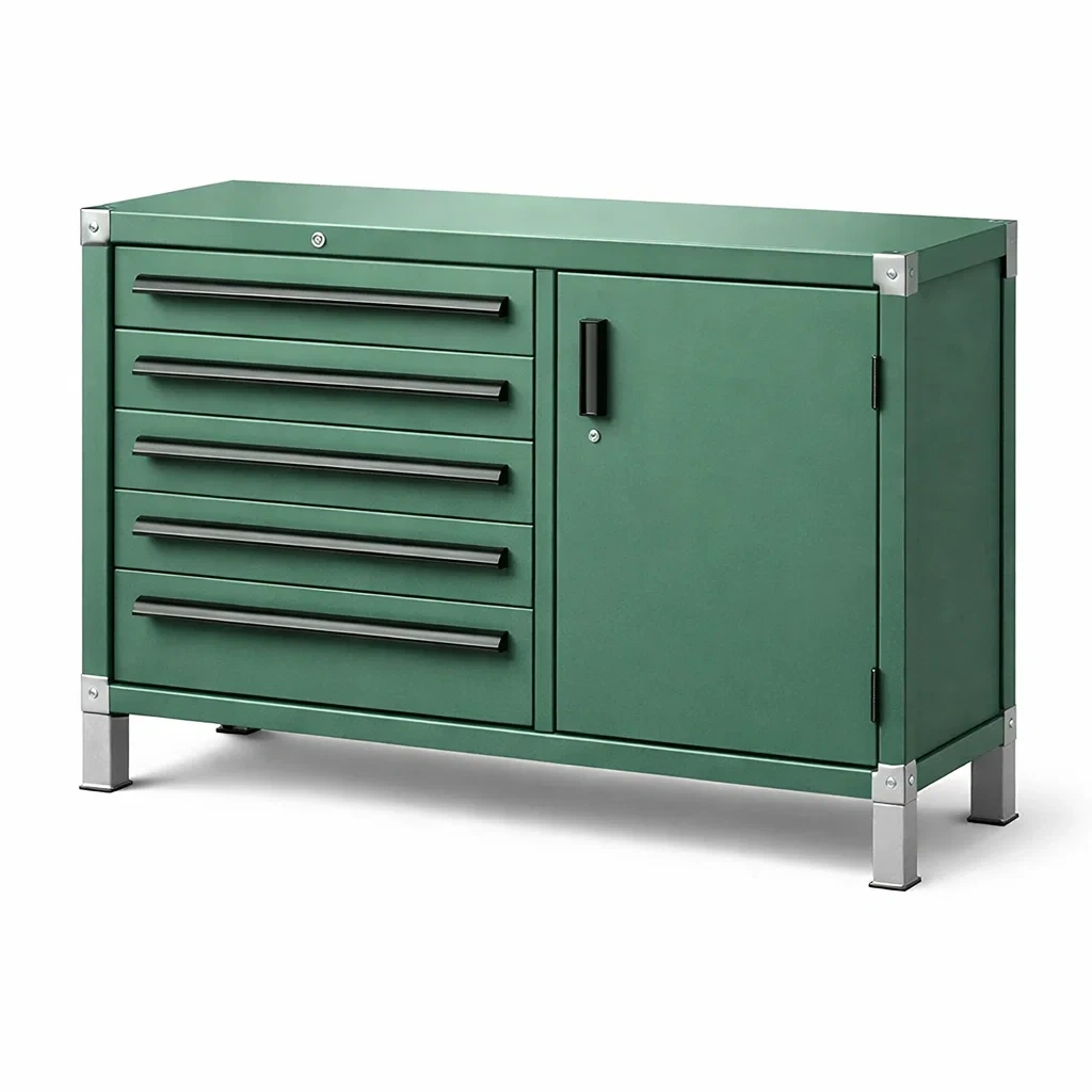 Elle est équipée de 5 tiroirs et d'une porte avec serrure pour sécuriser vos outils et accessoires.