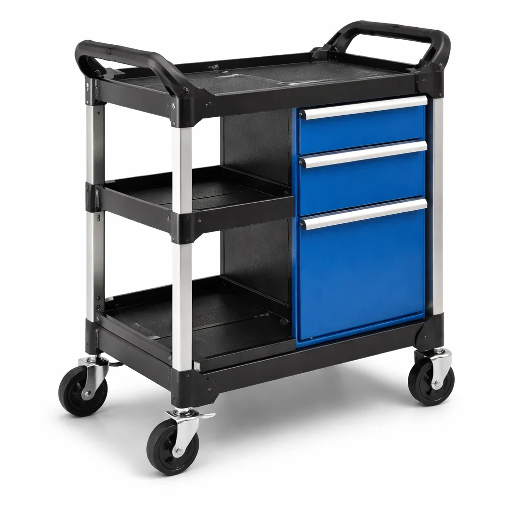 Matériau : Cadre en acier, étagères en plastique ABS, tiroirs en métal.