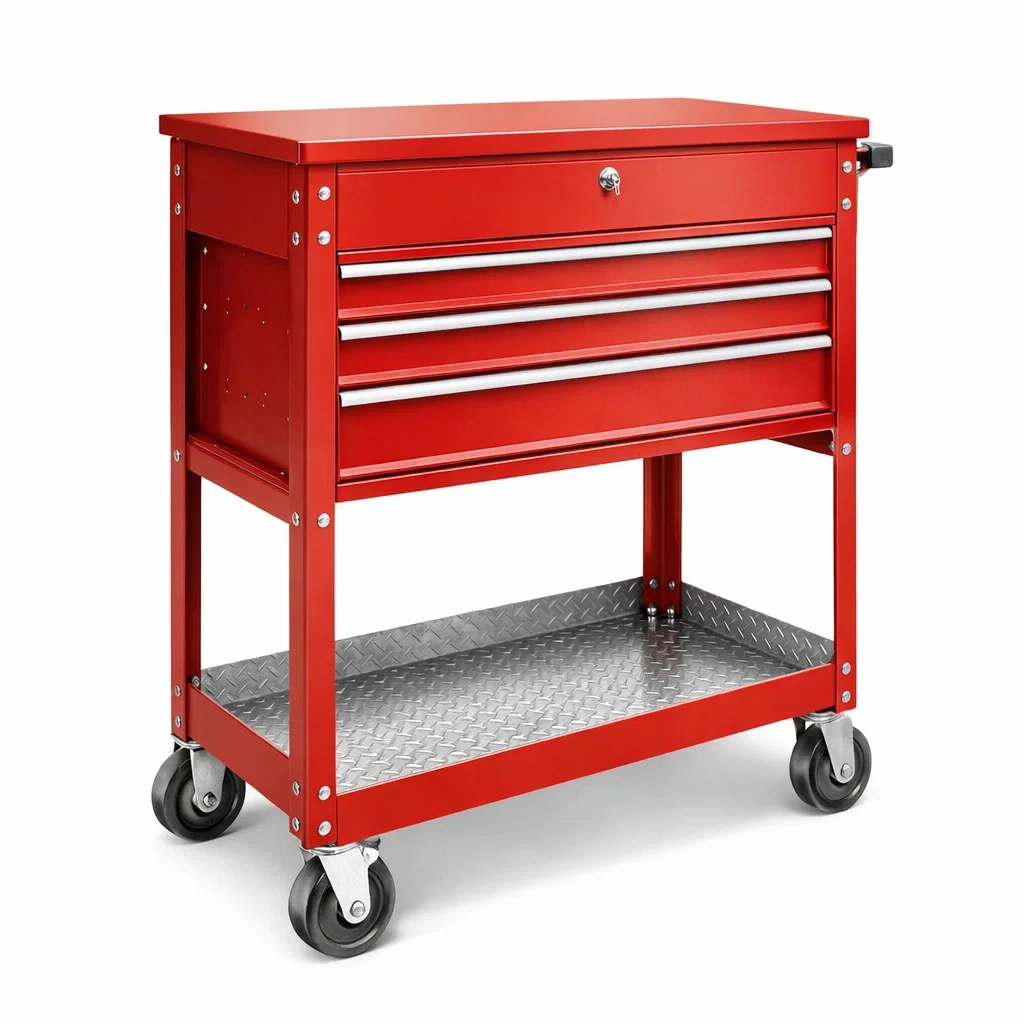 Structure : 3 tiroirs, 1 étagère inférieure à motifs en diamant, avec roulettes pivotantes