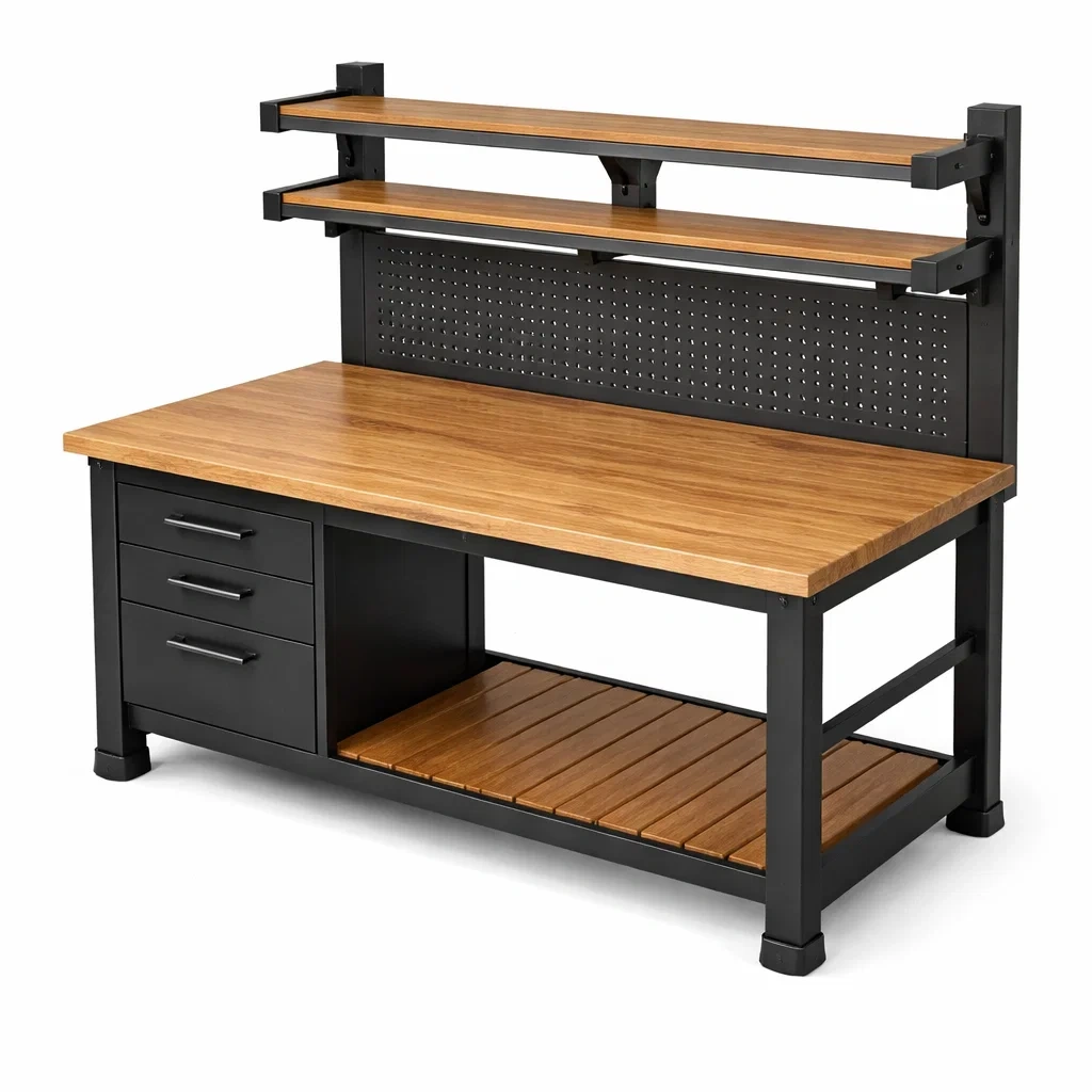 - Trois tiroirs, étagères supérieures, espace sous le plateau